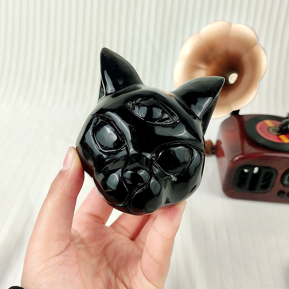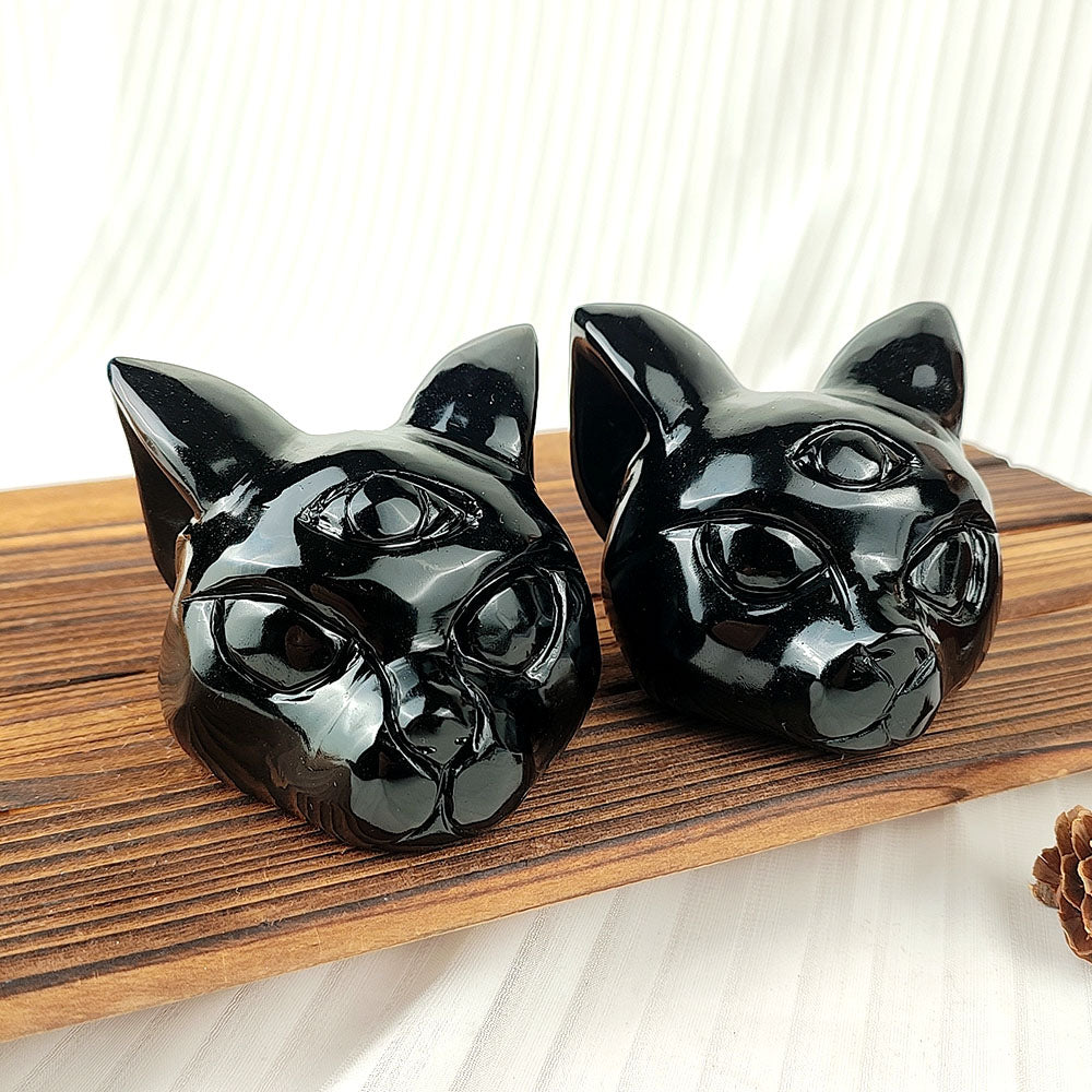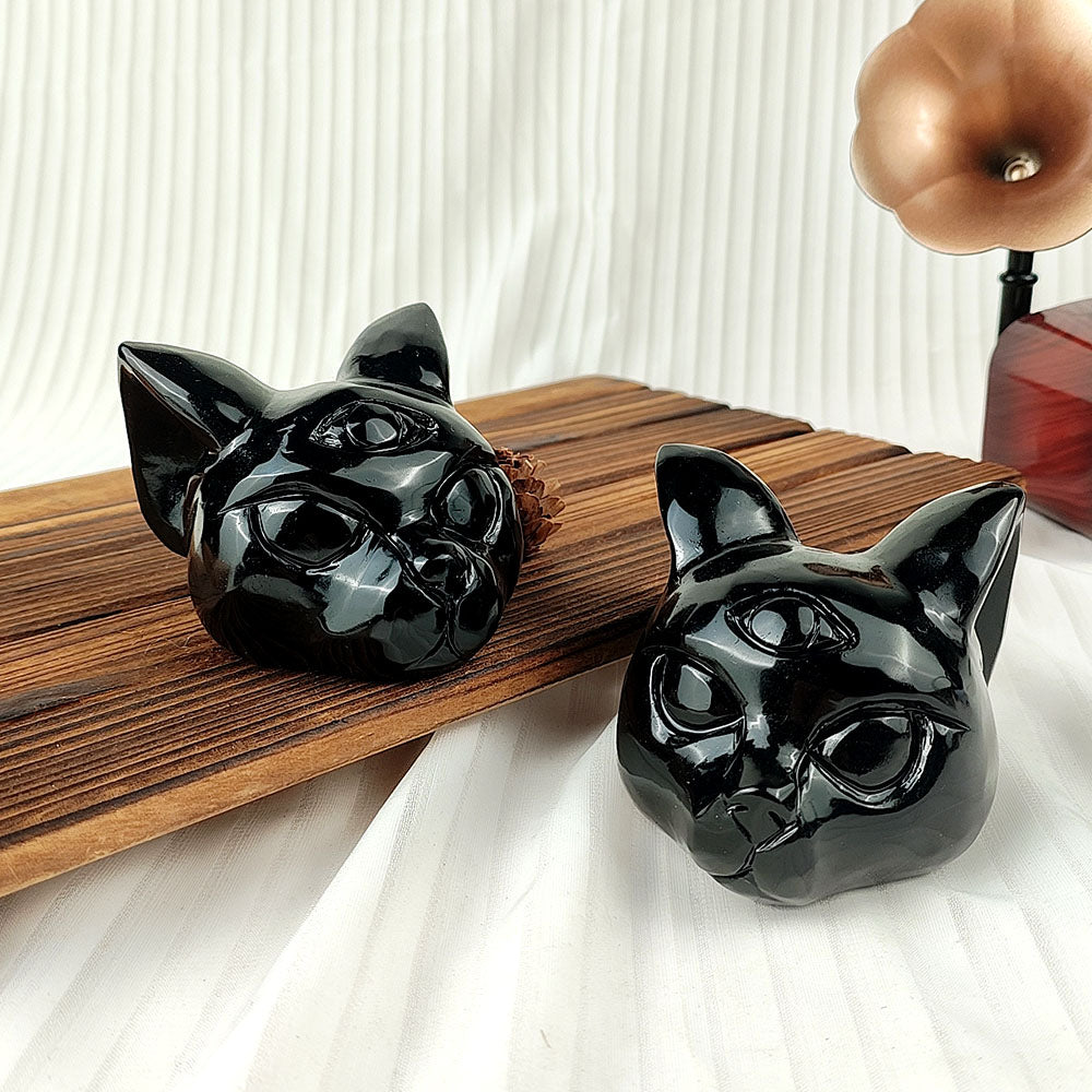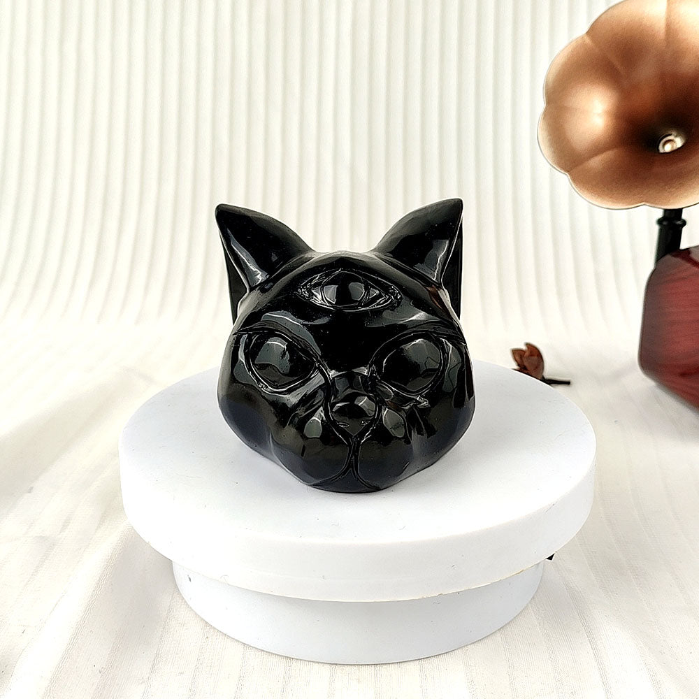 Name: Obsidian Cat Head Carving