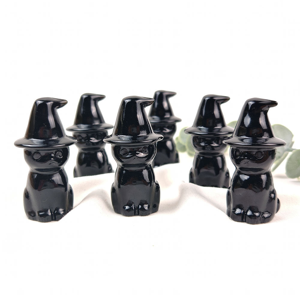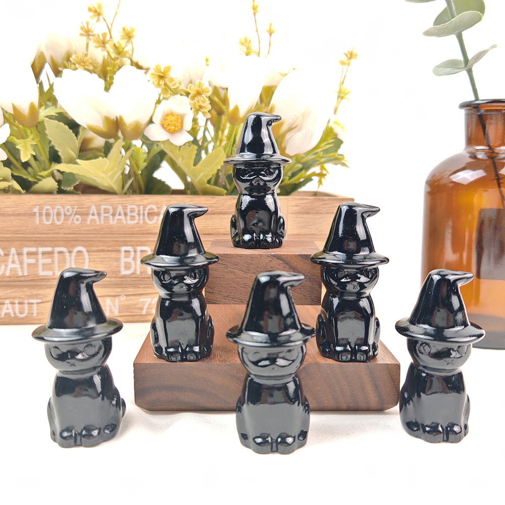 Obsidian Wizard Hat Cat Carving